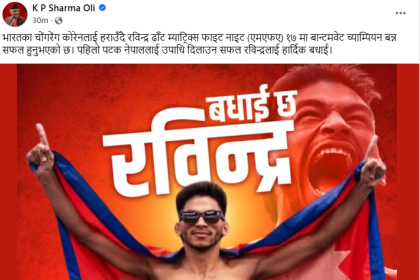 प्रधानमन्त्री केपी शर्मा ओलीले भारतको नोएडामा सम्पन्न म्याट्रिक्स फाइट नाइटमा च्याम्पियन बनेका…